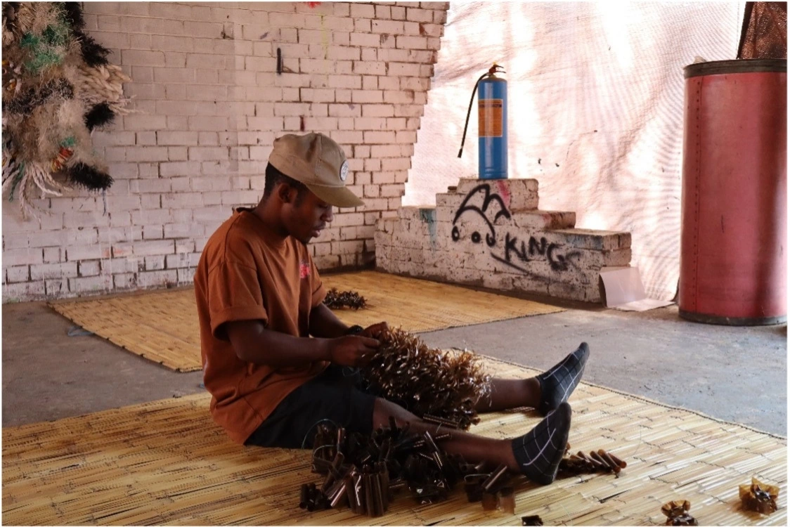 Through these materials and processes, Chataika’s work reflects on labour as both necessity and resistance, revealing how ordinary materials and repetitive actions embody resilience, perseverance, and collective survival within his community.