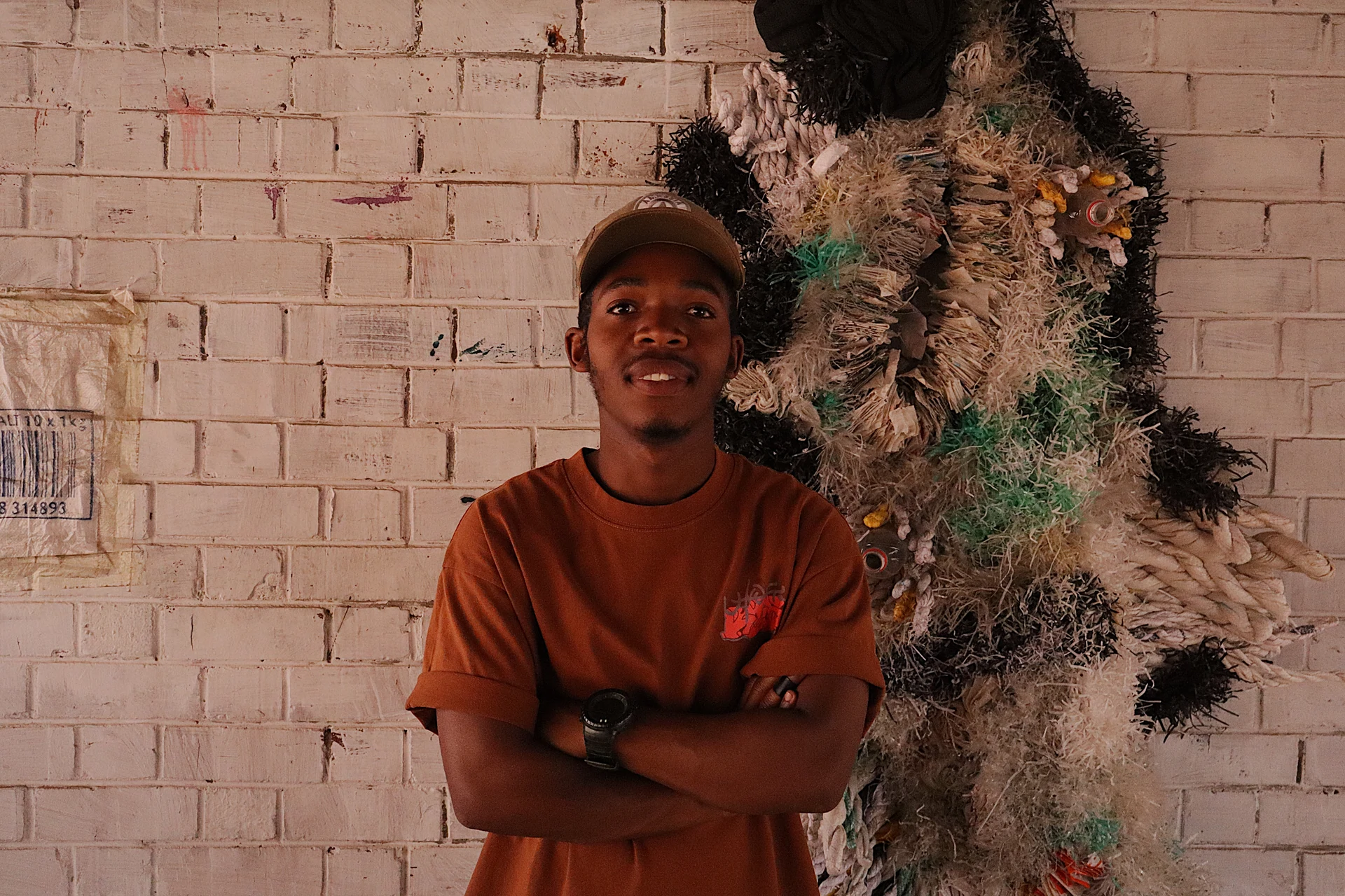 A broader conversation emerges around the existential crisis of humanity’s relationship with plastic and the urgent realities of sustainability. As we engage in conversation about this compelling medium and its layered truths, Tafadzwa agrees to be photographed at work and alongside the materials he uses—materials that force audiences to confront uncomfortable, yet necessary realities embedded within everyday objects.